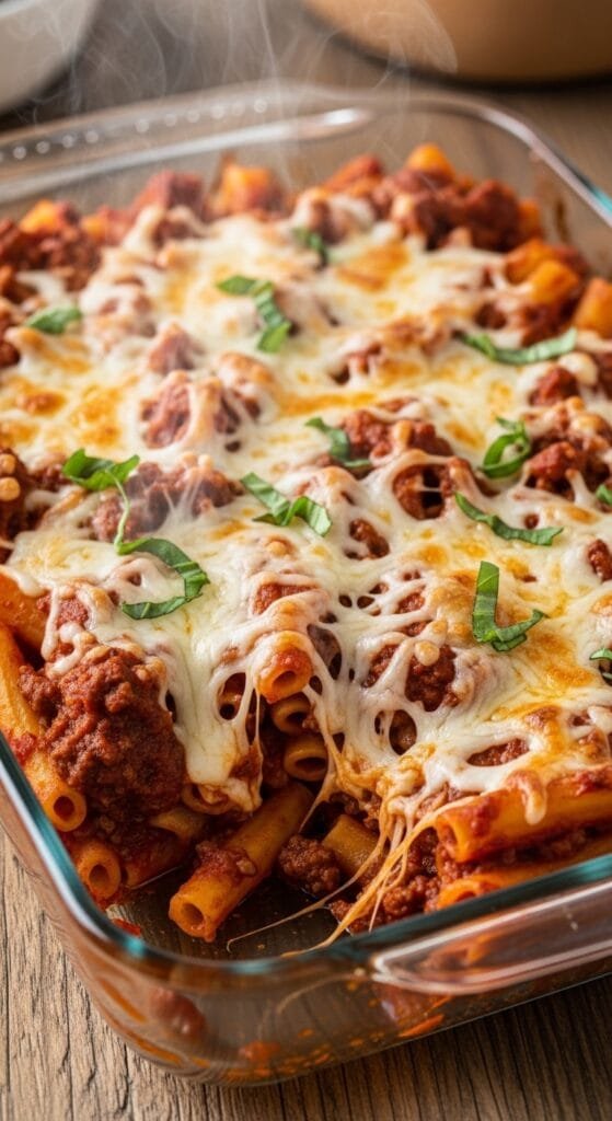 What makes baked ziti especially practical is its flexibility. It can be assembled ahead of time, baked fresh for a family dinner, or reheated for leftovers that still taste just as satisfying. The balance of sauce, pasta, and cheese ensures every bite is flavorful without feeling heavy or overly rich. Whether you’re feeding a crowd, planning meals for the week, or looking for a reliable dish to bring to a gathering, this baked ziti fits naturally into everyday cooking.