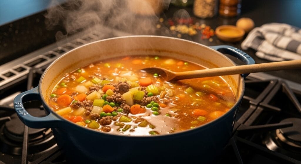 Cheeseburger Soup can be frozen for up to two months. Cool the soup completely before transferring it to freezer-safe containers. Potatoes can soften slightly after freezing, but the overall texture remains creamy and satisfying. Thaw overnight in the refrigerator and reheat slowly to prevent the cheese from separating.