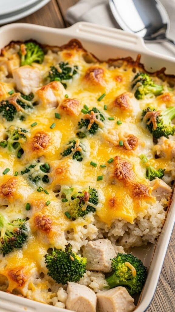 Creamy Chicken Broccoli Rice Cheese Casserole