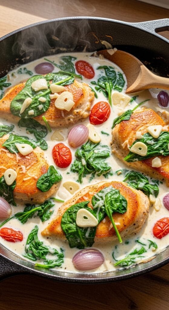 Chicken Florentine is a classic Italian-American dish where tender pan-seared chicken is coated in a velvety garlic-Parmesan cream sauce and finished with fresh spinach. This recipe delivers a rich, comforting flavor profile while staying simple enough for a quick weeknight dinner. With careful simmering, well-balanced seasoning, and straightforward steps, it produces a consistently smooth, creamy sauce and perfectly cooked chicken.
