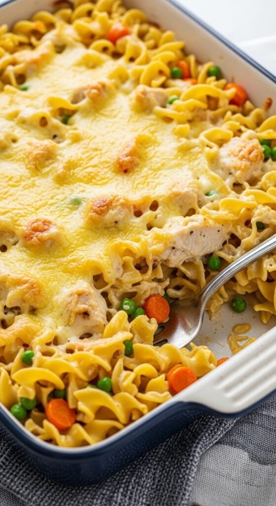 This chicken noodle casserole brings together everything people love about comfort food—creamy sauce, tender chicken, melted cheese, and perfectly cooked noodles wrapped in one easy dish. It’s simple enough for weeknights yet cozy enough for family gatherings, potlucks, or freezer-friendly meal prep. With endless variations and consistently delicious results, it’s a recipe that becomes a staple in any home kitchen. Serve warm with your favorite sides and enjoy a satisfying, nostalgic meal that always brings people back for seconds.