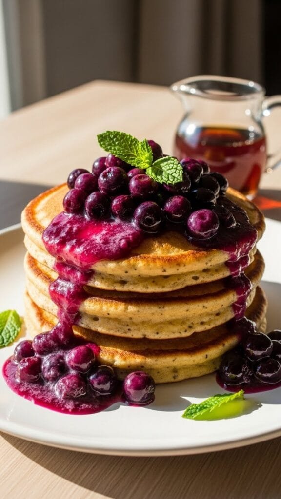 Paired with a quick blueberry compote, these pancakes feel comforting without being heavy. The compote adds natural sweetness and gentle acidity, eliminating the need for refined sugar while enhancing the overall flavor.