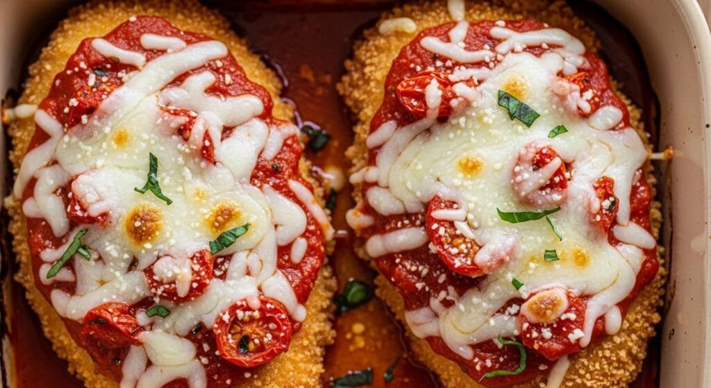The chicken cooks evenly because it’s sliced thin, which helps prevent dry spots while still allowing a crisp coating to form. The breading process creates a sturdy crust that holds up under sauce, so the chicken stays crisp rather than soggy. Pan-searing adds depth and color, while oven baking finishes everything gently, giving the cheese time to melt without overcooking the meat.
