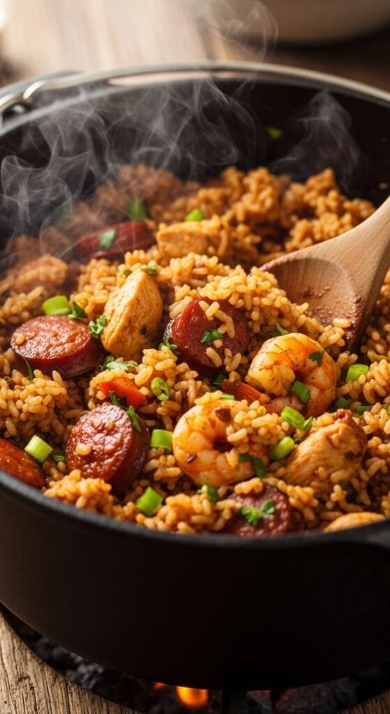 Jambalaya actually tastes better the next day because the flavors deepen.