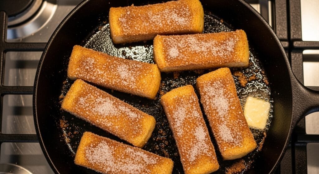 Cook the French toast sticks for 1–2 minutes per side, or until they are lightly golden and firm to the touch.