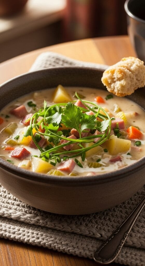 ham and potato soup, creamy ham soup, leftover ham recipe, easy soup recipe, winter comfort food