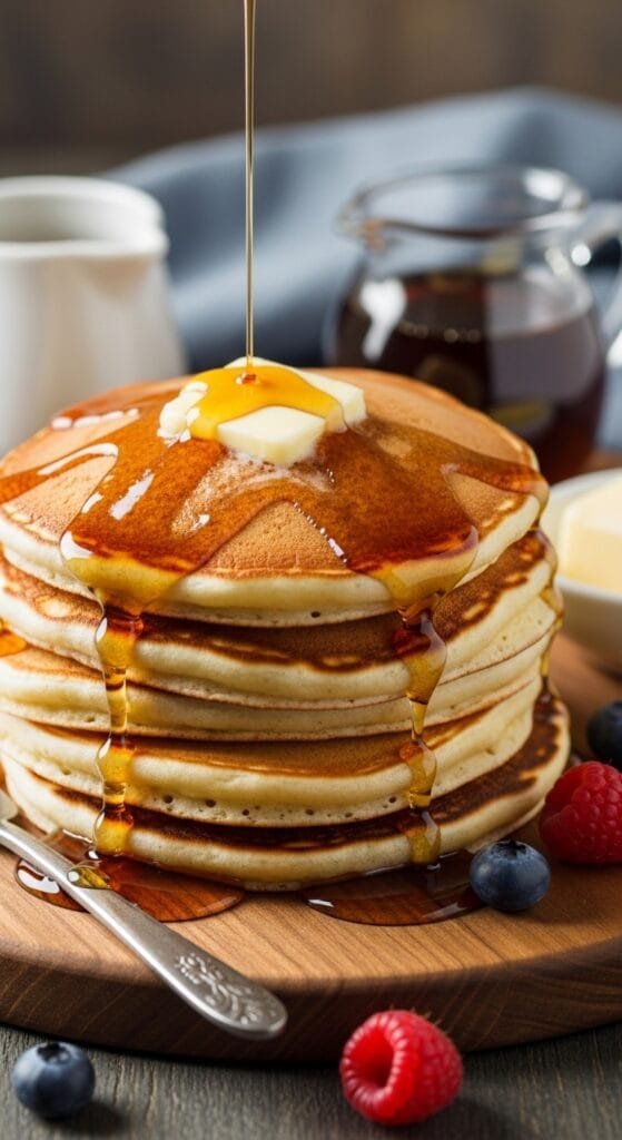 Soft, fluffy homemade pancakes made with pantry staples for a quick, comforting breakfast or brunch.