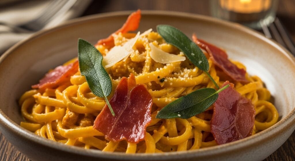 Pumpkin Alfredo Pasta with Prosciutto