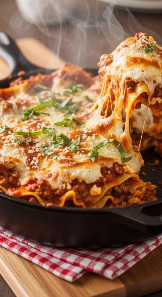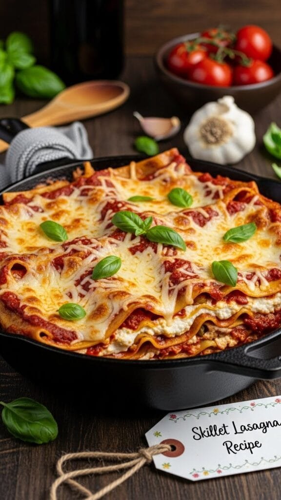 This Skillet Lasagna delivers everything you expect from a classic baked lasagna but simplifies the method into one pan. The sauce cooks directly in the skillet, the noodles soften as they simmer, and the cheese melts into a rich, hearty finish. With no boiling and no oven time, it’s a reliable recipe for weeknights when you want comfort food without extra steps or cleanup.