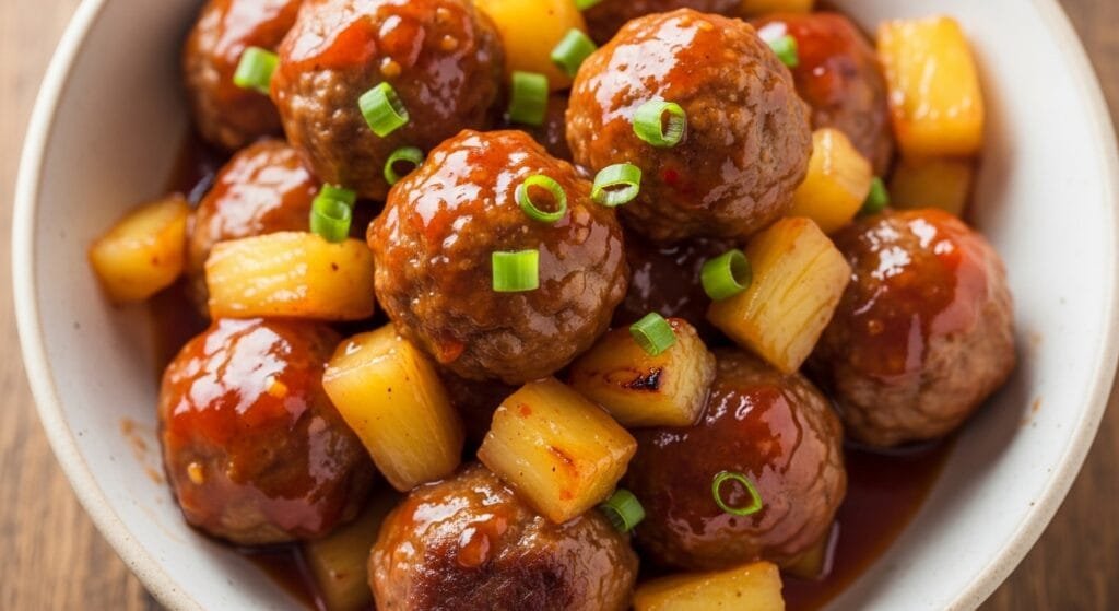 Tender homemade meatballs coated in a sweet chili pineapple sauce that balances sweet, savory, and mild heat. Perfect for appetizers, dinners, or meal prep.
